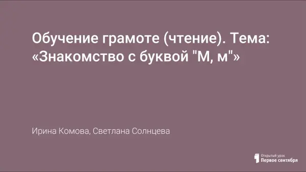 Обучение грамоте (чтение). Тема: «Знакомство с буквой "М, м"»