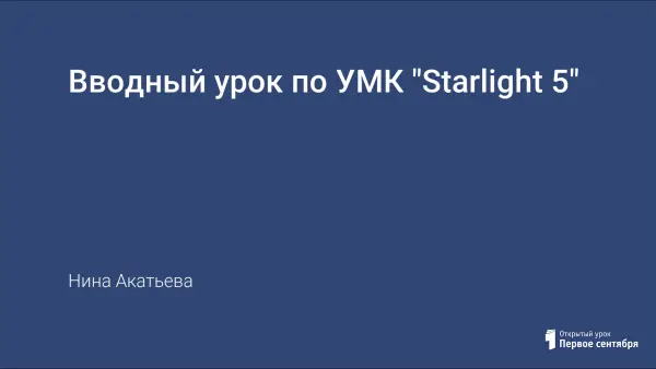 Вводный урок по учебнику Барановой К. М., Дули Д., Копыловой В. В., Мильруд Р. П., Эванс В. "Starlight 5" знакомит учеников друг с другом, учебником и учителем, обобщает знания, усвоенные учащимися в 4-м классе. Формы обучения: беседа, монолог, самостоятельная и групповая работа, познавательная информация.