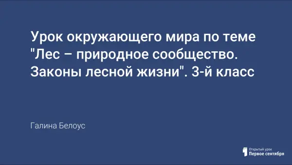 Цель урока: сформировать представления учащихся о лесе как природном сообществе; познакомить с законами лесной жизни; систематизировать представления о видах леса и ярусности в них, разнообразии лесных обитателей; развивать умения выделять отличительные признаки предметов и объединять их в группы; формировать умения видеть, сравнивать, обобщать и делать выводы.
