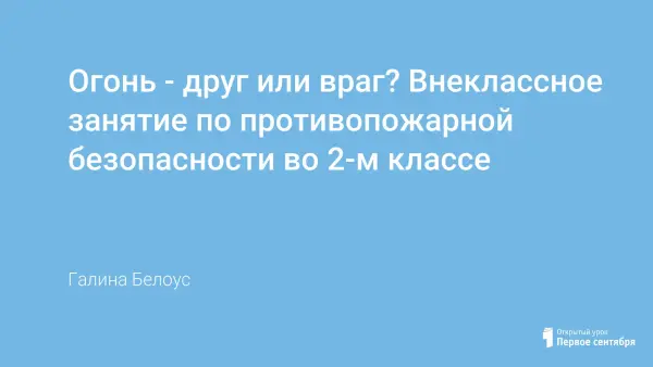 Внеклассное занятие по противопожарной безопасности проводится с целью формирования у детей осознанного и ответственного отношения к выполнению правил пожарной безопасности. Ребята знакомятся с ролью огня в жизни человека как положительной, так и отрицательной; узнают о причинах возникновения пожаров, о правилах пожарной безопасности и доступных средствах пожаротушения, приобретают знания, умения и навыки, необходимые для действия в экстремальных ситуациях.