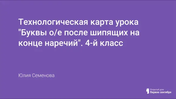 Цель урока: находить (видеть) в словах орфограмму букву о, е после шипящих на конце наречий, писать слова с этой орфограммой, устно и графически объяснять условия выбора написания, отличать орфограмму букву о, е после шипящих на конце наречий от орфограммы буквы ё, о после шипящих в корне, суффиксе и окончании других частей речи.