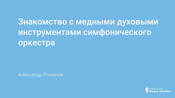 Занятие по предмету «Слушание музыки» для учащихся 1-го года обучения в области музыкального искусства «Духовые и ударные инструменты», «Народные инструменты» знакомит учащихся с историей, внешним видом и тембрами медных духовых инструментов, развивает внимание, наблюдательность, умение публично выступать, расширяет кругозор учащихся.