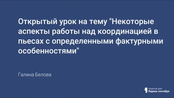 Приобретение навыков координации – ключ к решению широкого круга двигательно-игровых, музыкально-звуковых, художественных задач. Работа над координацией требует от исполнителя мобилизации всех способностей: умения понимать, слушать и слышать музыку, развивать технические навыки и наконец стремиться к главной цели исполнительства – воплощению художественного замысла произведения.
