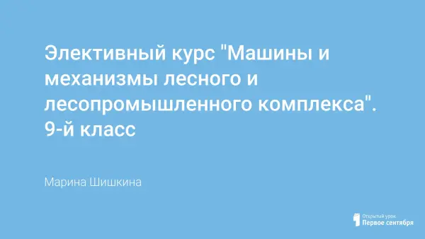 Элективный курс «Машины и механизмы лесного и лесопромышленного комплекса» поддерживает, расширяет базовые знания учащихся по физике, интегрирует материал сопутствующих предметов (черчение, биология) в элективный курс и дает возможность учащимся 9-го класса более четко определиться в выборе профессии.