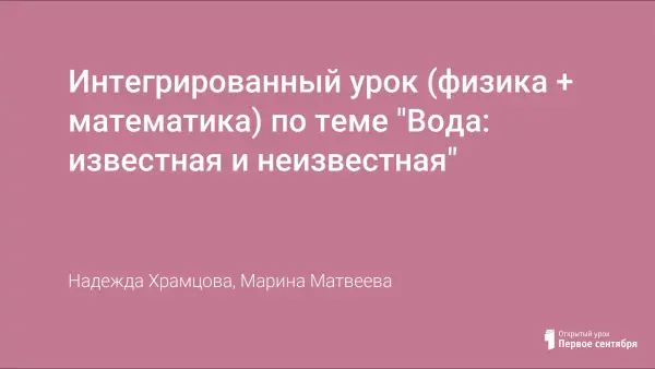 Интегрированный урок (физика + математика) по теме "Вода: известная и неизвестная"
