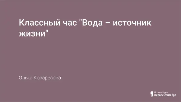 Цель классного часа: показать учащимся значение воды в жизни живой природы, рассказать о том, какой путь проходит вода, прежде чем попадает в наши дома, формировать привычку бережно и разумно использовать воду. Ученики развивают наблюдательность, внимание, память, логическое мышление, умение принимать игровую ситуацию и участвовать в ней; воспитывают бережное отношение к воде.