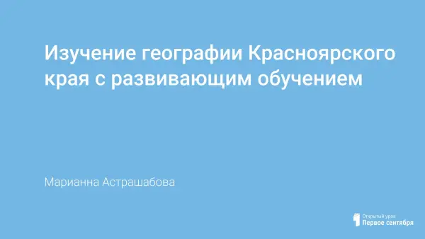На уроках географии, в том числе при изучении своего региона, развитивается внимание, мышление и память, повышается мотивация обучения. Примером изучения географии Красноярского края с развивающим обучением служит урока-игра, в котором обобщаются знания по разделу «Физическая география Красноярского края».