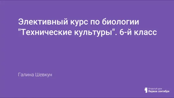 Элективный курс по биологии "Технические культуры". 6-й класс