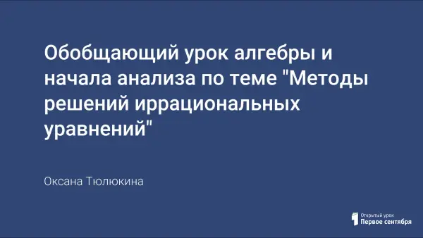 Урок алгебры и начала анализа соответствует программе 10-го класса по УМК Ш.А. Алимова или Ю.М. Колягина. Расширяет знания по теме, повторяет, обобщает и систематизирует материал, приводит в систему знания по типам и методам решения иррациональных уравнений, формирует умения применять приемы: сравнения, обобщения, выделения главного, переноса знаний в новую ситуацию, развивает математический кругозор, мышление и речь, внимание и память.
