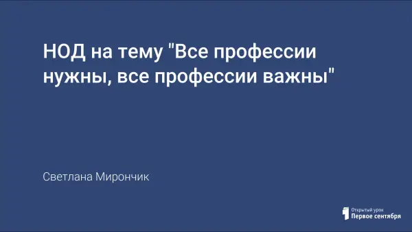 Цель НОД: систематизировать и расширить представления детей о разнообразных профессиях, их названиях и роде деятельности