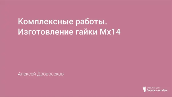 На уроке отрабатываются виды слесарных работ, связанные с обработкой металла: составление технологической карты, разметка детали, резка и опиливание металла, сверление отверстий, нарезание резьбы, определение и контроль выполненных размеров. Материал может быть использован в качестве одного из практических заданий для квалификационного экзамена при проверке освоения профессионального модуля.