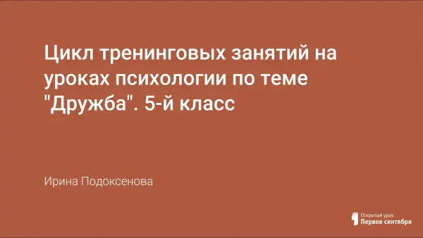 Переход из младшей школы в среднюю − интересный и сложный период в жизни школьника. В 5-м классе для детей оказывается многое новым: учителя, предметы, а также одноклассники. Предлагаемый цикл тренинговых занятий в рамках уроков психологии сплачивает детский коллектив, поддерживает благоприятный внутригрупповой климат в классе, развивает способности принимать друг друга, а также повышает самооценку детей.