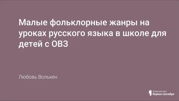 Детский фольклор – это особый вид устного народного поэтического творчества. Использование материала именно данного вида помогает нам достичь поставленных целей и задач гораздо быстрее и эффективнее, т.к. произведения детского фольклора короткие (поэтому их еще называют произведениями малого фольклорного жанра), что очень нравится детям с ОВЗ, имеющим интеллектуальное недоразвитие, емкие по содержанию, что помогает в умственном развитии, а также позволяет работать над развитием речи, делать ее меткой, выразительной, богатой в моральном и эмоциональном плане. Также, разделяя все произведения по их функциональности, возможно использование игрового материала (пестушки, заклички, считалки, припевки) в устной работе. А, работая над словесным содержанием, использование материала вне зависимости от игрового действия (песни, прибаутки, пословицы и поговорки, скороговорки, небылицы) возможно на любом этапе урока: при изучении, закреплении, контроле и коррекции.