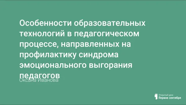 Образовательные технологии - профилактика синдрома эмоционального выгорания. Учет индивидуального стиля учебно-познавательной деятельности (ИСУД) ученика позволит учителю реализовать профессиональную потребность в обеспечении выбора таких приемов и форм работы, которые обеспечат каждому ученику свой, индивидуальный путь к успеху.