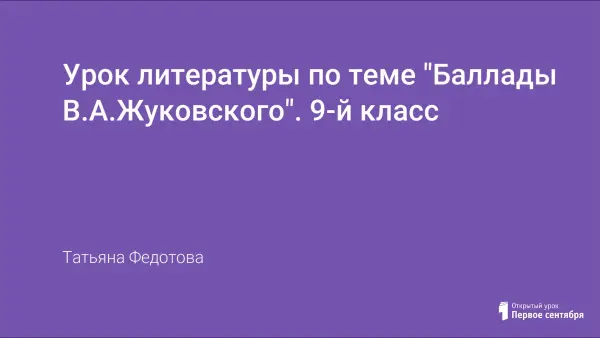 Урок составлен на основе деятельностного подхода и призван выявить идейно-художественное своеобразие баллад Жуковского, развивать эмоциональное восприятие прекрасного, творческое мышление; формировать интерес к поэзии; приобщать к отечественному культурному наследию.