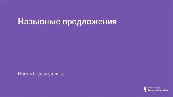 Цель урока: находить назывные предложения; определять роль назывных предложений в художественной литературе; выразительно читать назывные предложения; развивать мотивацию изучения русского языка, используя интересные примеры и задания; развивать умения работать в группе, речь; расширять кругозор.