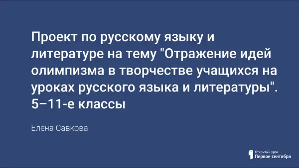 Проект по русскому языку и литературе на тему "Отражение идей олимпизма в творчестве учащихся на уроках русского языка и литературы". 5–11-е классы