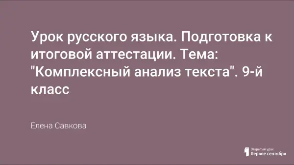 Урок русского языка. Подготовка к итоговой аттестации. Тема: "Комплексный анализ текста". 9-й класс