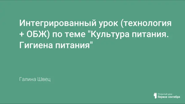 Урок формирует у учащихся основы культуры питания как одной из составляющих здорового образа жизни. Изучение темы урока сопровождается презентацией с проецированием основных понятий.