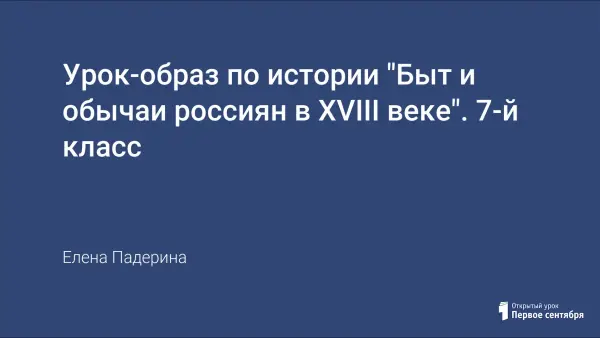 Представлены характеристика и причины изменений, произошедших в XVIII в. в повседневной жизни россиян: жилища дворян, горожан и простых крестьян; посуда и атрибуты крестьянского быта; модные тенденции аристократических причесок и одежды; досуг горожан и дворян.