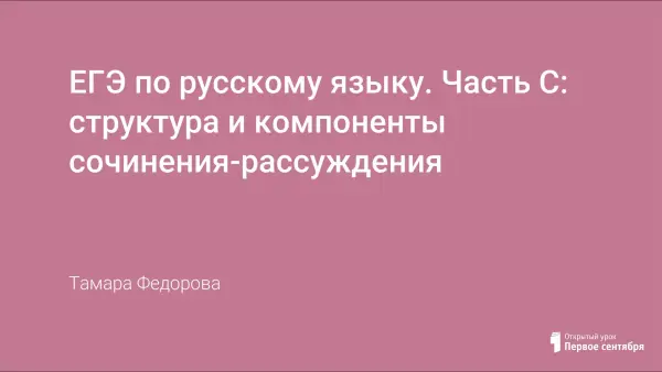Система презентаций выстроена по единой схеме: знакомство с критерием проверки сочинения, теоретические сведения по теме презентации, типичные ошибки, клише, образцы выполнения задания, тренировочные упражнения в формате ЕГЭ, источники. Проект рассчитан на учащихся 10–11-х классов, но целесообразно использование презентаций или их фрагментов в 8−9-х классах, так как они содержат систематизированные теоретические сведения о структуре и компонентах сочинения-рассуждения.