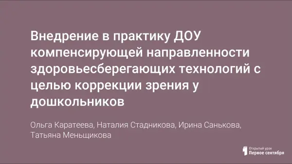 Здоровьесберегающие технологии в коррекционной работе с детьми дошкольного возраста с нарушениями зрения, усилия работников ДОУ сегодня как никогда направлены на оздоровление ребенка-дошкольника, культивирование здорового образа жизни. Неслучайно именно эти задачи являются приоритетными в программе модернизации российского образования, отражены в Федеральных государственных требованиях к структуре основной общеобразовательной программы дошкольного образования.