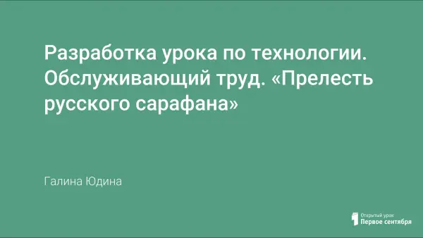 Цели урока: ознакомить учащихся с особенностями сарафанного комплекса разных регионов России; совершенствовать навыки моделирования изделия, используя знания о композиции и цветосочетании; развивать творческие способности и эстетический вкус.