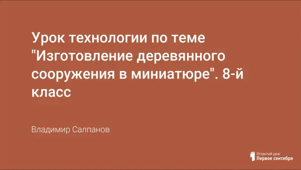 Урок технологии формирует технологические знания, навыки и умения по обработке изделий из древесины, применить их. Урок знакомит учащихся с историческим прошлым деревянного зодчества, с сохранившимися древними строениями, предназначением сторожевых башен и способами их строительства. В ходе урока ученики осваивают способ соединения деталей из древесины “в обло” при строительстве жилых домов.