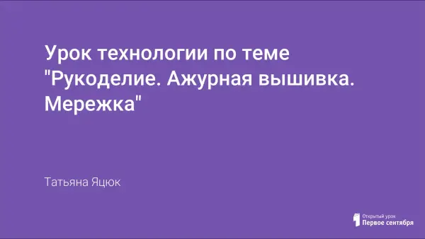 Цель данного урока обучить выполнять задание по образцу, сформировать знания по ручной вышивке на уровне применения в сходной ситуации; научить самостоятельно, оценивать результаты работ. Вызвать интерес к культуре и искусству. Совершенствовать эстетические взгляды, развивать творческие способности личности.