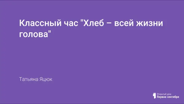 Классный час призван показать учащимся, что во все времена, у всех народов, во всех странах – хлеб основа жизни человека, что процесс выращивания хлеба очень сложный и трудный, поэтому все должны бережно относиться к хлебу, уважать труд людей, выращивающих его.
