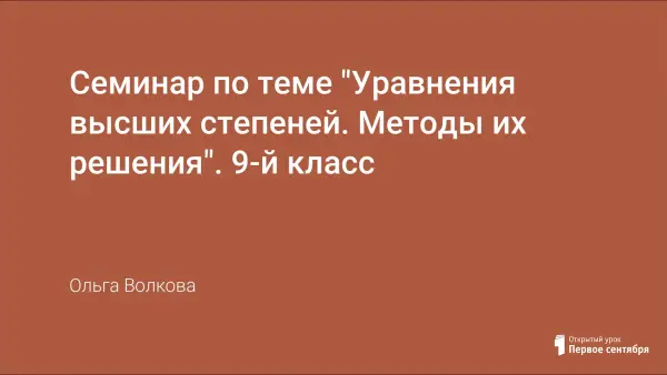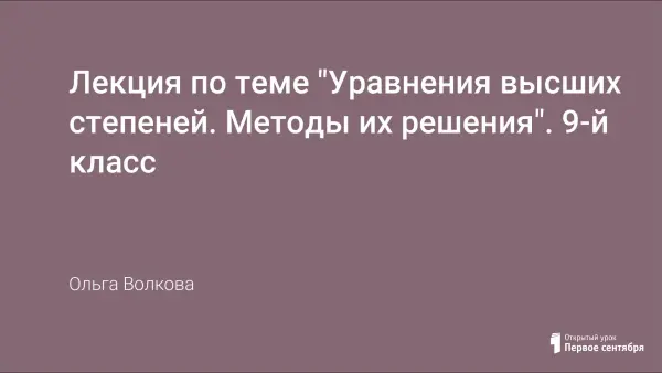 Урок нацелен на закрепление понятия целого рационального уравнения n-й степени. Учащиеся формулируют основные методы решения уравнений высших степеней (n ≥ 3). Учатся основным методам решения уравнений высших степеней, учатся по виду уравнения определять наиболее эффективный способ его решения.