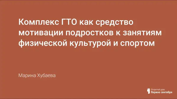 Цель данной работы – показать использование комплекса ГТО как эффективного средства мотивации подростков к занятиям физической культурой и спортом.