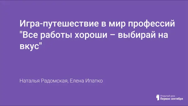 Игра-путешествие в мир профессий "Все работы хороши – выбирай на вкус"