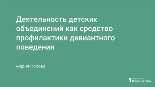 Активная деятельность в рамках детских общественных объединений − альтернатива негативным проявлениям в подростковой среде. Объединения имеют возможность полностью удовлетворить потребность в общественно значимой деятельности, где учащиеся смогли бы самореализоваться; в группе сверстников, где происходит их социализация; в значимом для них взрослом образце поведения и возможном варианте собственной жизни.