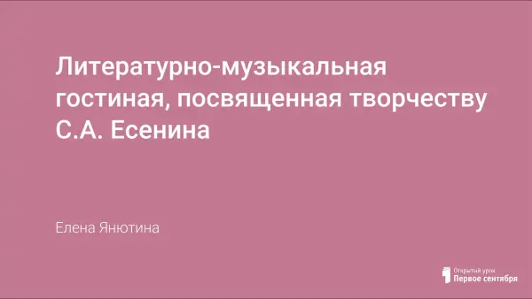 Литературно-музыкальная гостиная, посвященная творчеству С.А. Есенина, проведена в декаду русского языка и литературы с целью развития языкового и эстетического представления о «прекрасном идеале в речи». Мероприятие воспитывает любовь и уважение к русскому к слову, формирует бережное отношение к нему; формирует осознанный интерес к чтению; развивает словарный запас детей.