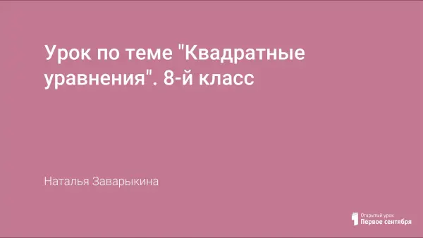 Урок направлен на закрепление полученных знаний о квадратных уравнениях. В ходе урока обучающиеся решают квадратные уравнения различными способами: используя формулу, применяя теорему Виета, а также с помощью свойств коэффициентов квадратного уравнения. Подобранные упражнения развивают познавательную активность обучающихся, позволяют им расширить представление о взаимосвязи математики с действительностью.