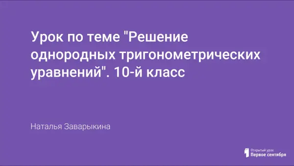 Урок направлен на формирование умений и навыков решения однородных тригонометрических уравнений. В ходе урока обучающиеся решают тригонометрические уравнения разных видов и знакомятся с решением однородных тригонометрических уравнений. Подобранные упражнения развивают познавательную активность обучающихся, позволяют им правильно делать выводы и обобщения, осуществлять взаимоконтроль и самоконтроль.