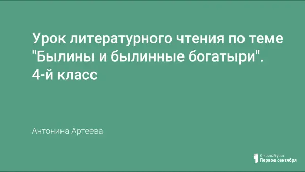 Урок литературного чтения проходит с элементами исследования. Дидактическая цель: обобщение и систематизация знаний. На уроке учащиеся отрабатывают отдельные учебные приемы, составляющие исследовательскую деятельность: узнают, каким образом персонажи русских былин с нами и по сей день, рассматривают сходство характера человека и персонажей русских былин.