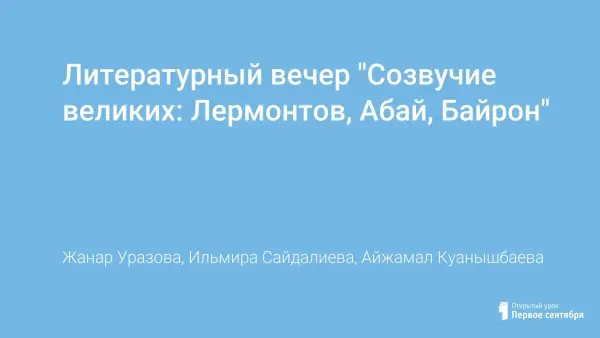 Литературный вечер для старшеклассников проведен к празднику языков в Казахстане. Присутствующие познакомились с поэтами: Байроном, Лермонтовым, Абаем. Каждый из них выразил в своих произведениях самое главное из того, чем жили люди того времени. Учащиеся на трех языках: казахском, русском, английском, читали стихи поэтов в сопровождении демонстрации слайдов. Была подготовлена книжная выставка, один из разделов которой посвящен образу поэта в изобразительном искусстве Казахстана.