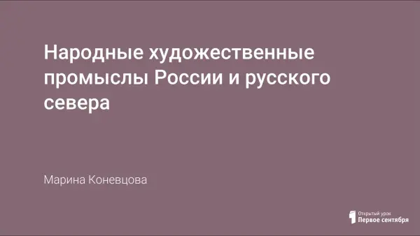 Цели урока: систематизировать и обобщить знания учащихся о народных художественных промыслах; углубить знания о промыслах русского севера; воспитывать уважение к творчеству народных мастеров и интерес к народным художественным промыслам России и русского севера.