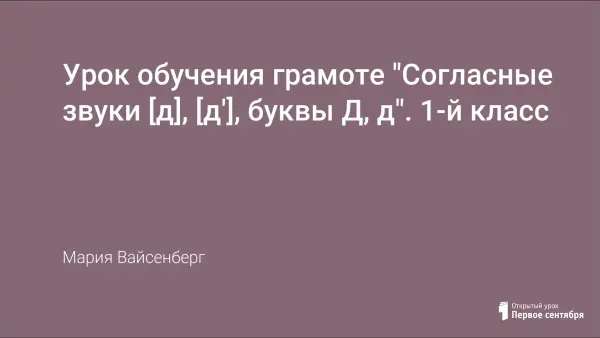 Урока знакомит учащихся с согласными буквами "Д д", развивает речь, память, логическое мышлениея. В ходе урока учащиеся овладевают навыками плавного слогового чтения с постепенным переходом на чтение целыми словами, предложений и коротких текстов с интонацией и паузами в соответствии со знаками препинания.