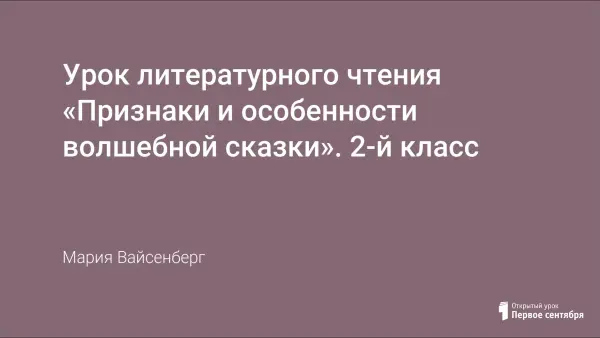 Учащиеся знакомятся с содержанием и героями волшебной сказки. Раскрывается значение слов «признак», «особенности», рассматривается использование их в активном словаре. Соотносятся содержание пословицы и основная мысль сказки. Учащиеся определяют признаки и особенности волшебной сказки и обосновывают свое мнение.