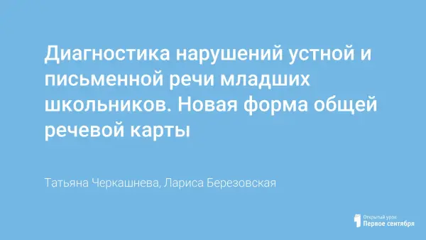 Диагностика нарушений устной и письменной речи младших школьников. Новая форма общей речевой карты