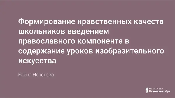На уроках изобразительного искусства (программа Б. Неменского) и во внеклассной работе по предмету воспитывается духовность и нравственность. Урок может стать местом и временем, где ученики поймут, почему человек в определенном случае поступил так, а не иначе. Именно на уроке нужно учить нравственным законам и принципам, отвечающим представлениям об истинной человечности и доброте, культурной полноценности в восприятии мира, которыми дети будут руководствоваться в жизни.