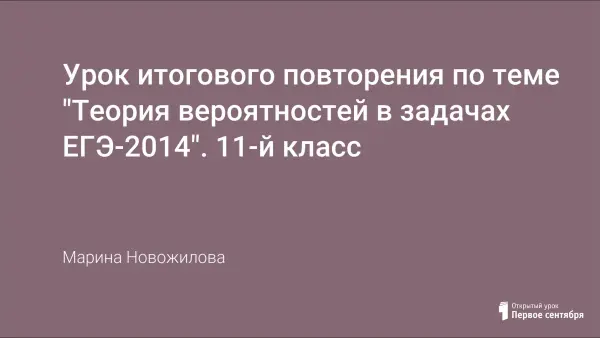 Урок итогового повторения систематизирует знания школьного курса теории вероятностей, структурирует и разъясняет основные методы решения заданий, предлагаемых на ЕГЭ. Приведены примеры решения различных по типу и сложности задач.