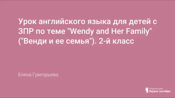Дети с ЗПР ‒ особая категория, характеризующаяся психическими и психосоматическими нарушениями здоровья. Несмотря на достаточную теоретическую разработанность проблемы, содержательная и практическая сторона актуальны. Урок основан на принципах коррекционно-развивающего обучения, повторяет усвоенный материал, формирует произносительные, лексические навыки аудирования и чтения с транскрипцией по теме "Семья".