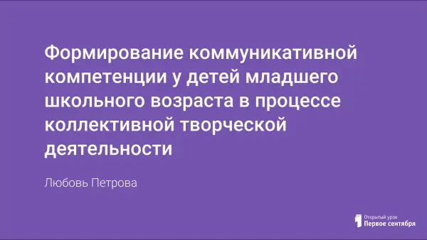Формирование коммуникативной компетенции у детей младшего школьного возраста в процессе коллективной творческой деятельности