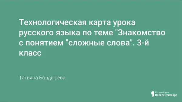 Технологическая карта урока русского языка по теме "Знакомство с понятием "сложные слова". 3-й класс