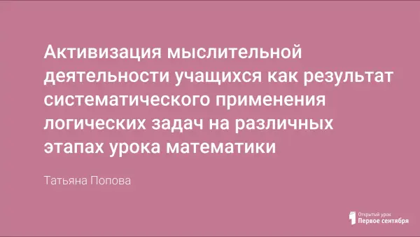 Стимулирование учебно-познавательной деятельности на основе умений наблюдать, сравнивать, обобщать, проводить аналогии, делать выводы и обосновывать их − необходимое условие активизации мыслительной деятельности учащихся. При систематическом использовании логических задач в учебно-воспитательном процессе активизируются мыслительная деятельность учащихся и как следствие повышается уровень знаний.