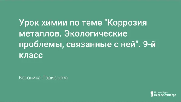 Урок химии по теме "Коррозия металлов. Экологические проблемы, связанные с ней". 9-й класс
